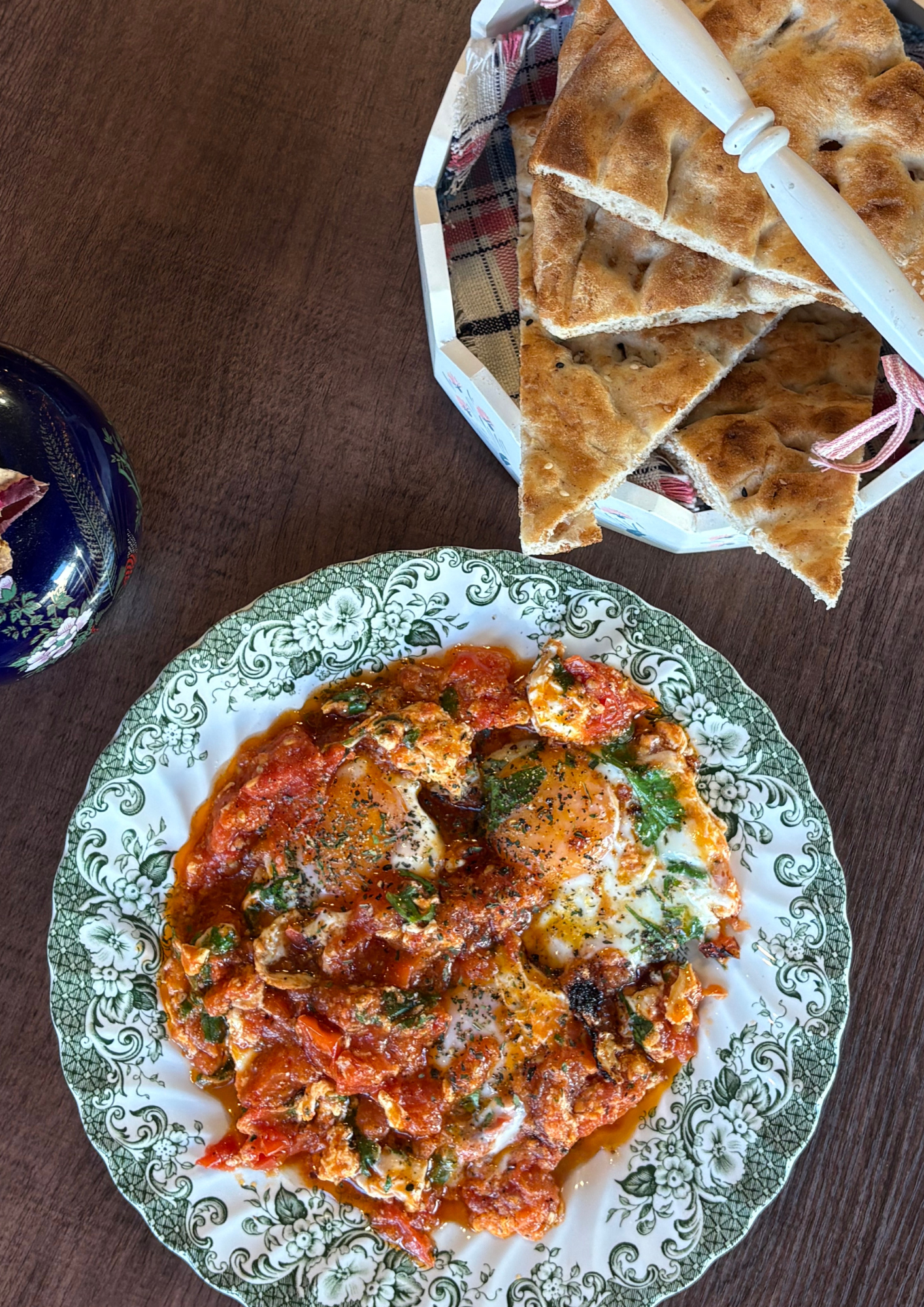 Das afghanische Frühstück wird auf traditionelle Weise zubereitet, ein Hauch von Heimat, ein Stück Neugier. Eier, geschmort mit Tomaten, scharfer Paprika und unserer Gewürtzmischung.
